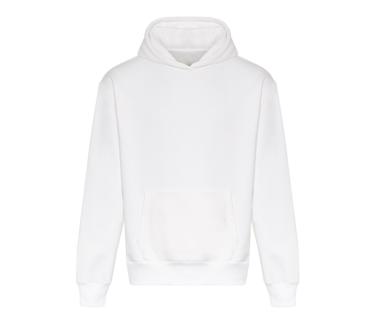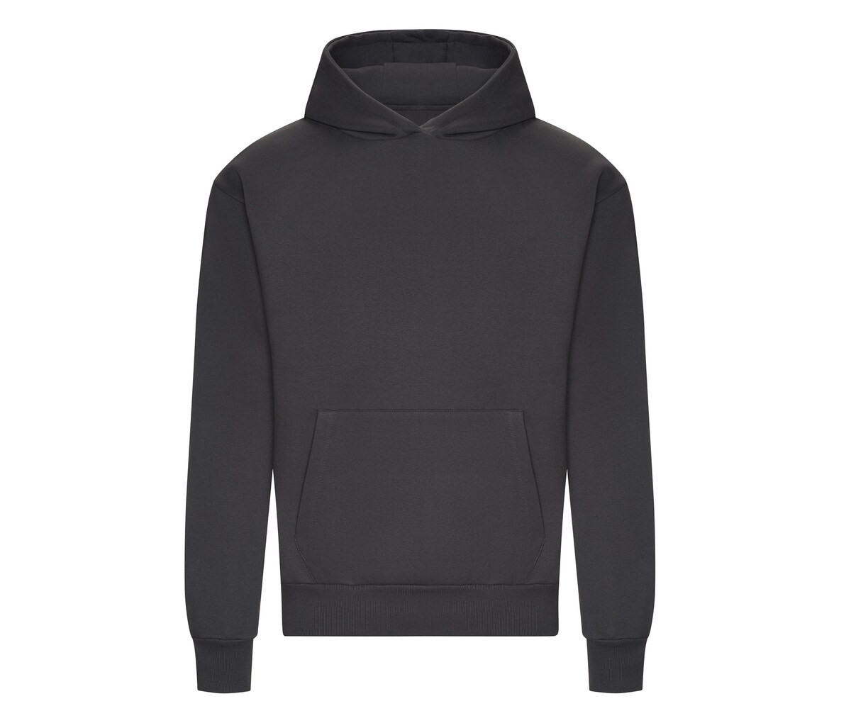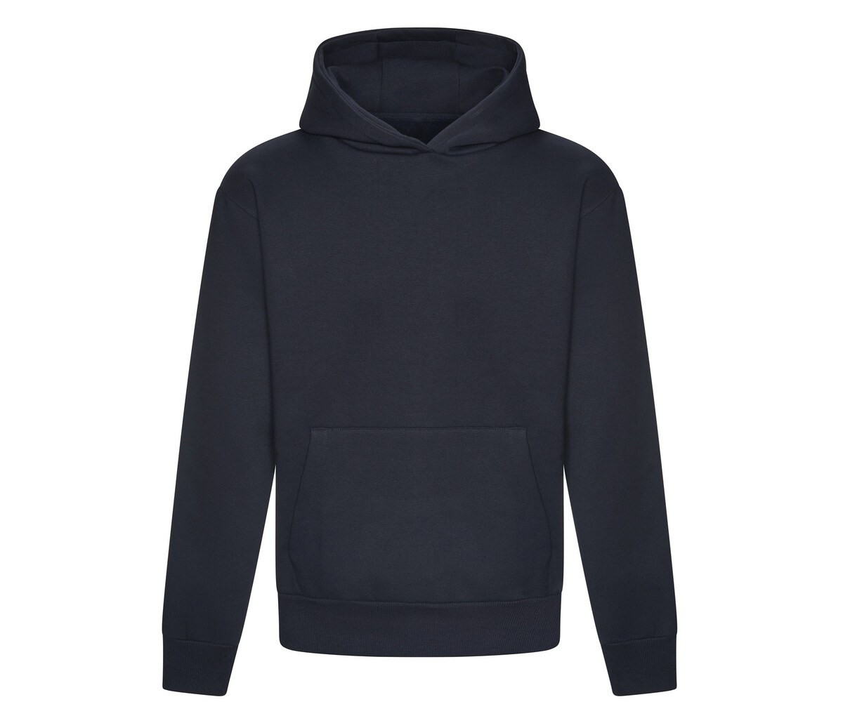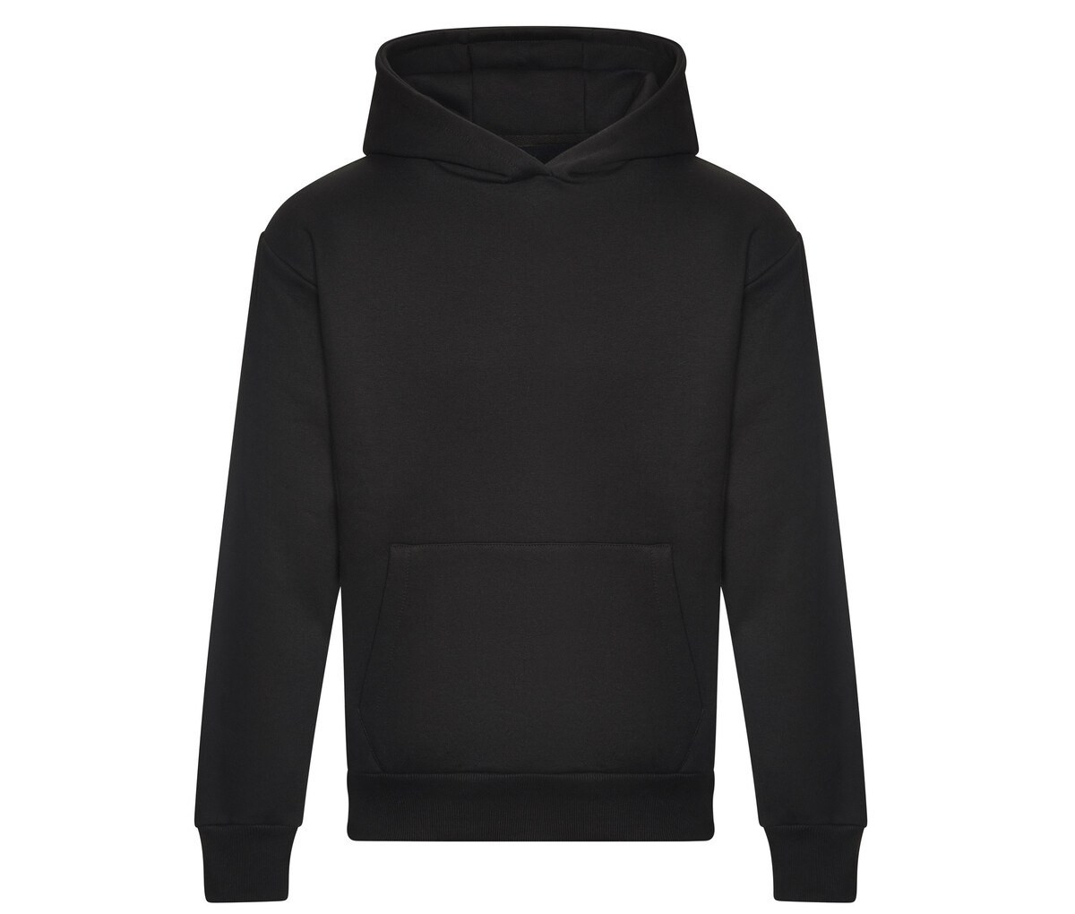 Oversize fit. Heavyweight. Three panel double fabric hood. Kangaroo pouch pocket with inner phone pocket. No drawcords. Ribbed cuffs and hem. Brushed inner fleece. Tear away label. 100% cotton faced fabric.