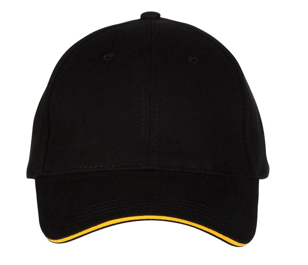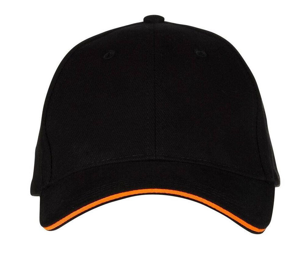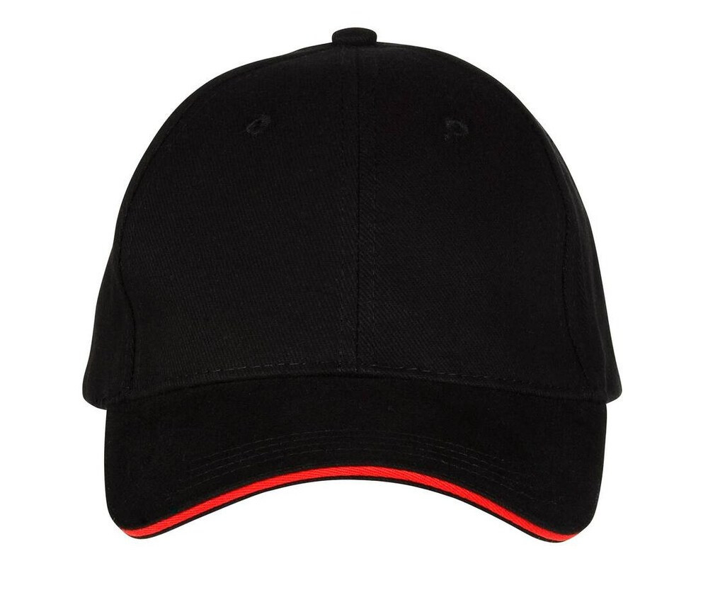 The Black&Match BM911 6 Panel Sandwich Cap is a fashionable unisex cap. This material is totally made of brushed cotton and will provide you with a delightful level of comfort. It boasts reinforced front panels and a contrast sandwich visor, as well as a metal buckle clasp that you can adjust to your size and assure a proper fit. The BM911 6 Panel Sandwich Cap is ideal for embroidery; the base color is black, but the brim of the visor is a different color; you can choose from red, white, yellow, green, orange, royal, and silver for this second color. The colors were picked to perfectly satisfy you based on your color preferences, and it goes in harmoniously with your daily look. This cap provides good sun protection while remaining fashionable.