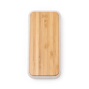 The 10,000 mAh external battery with bamboo and wheat fibre composite body, features a wireless charger offering a practical and sustainable solution to keep your devices charged while on the move.