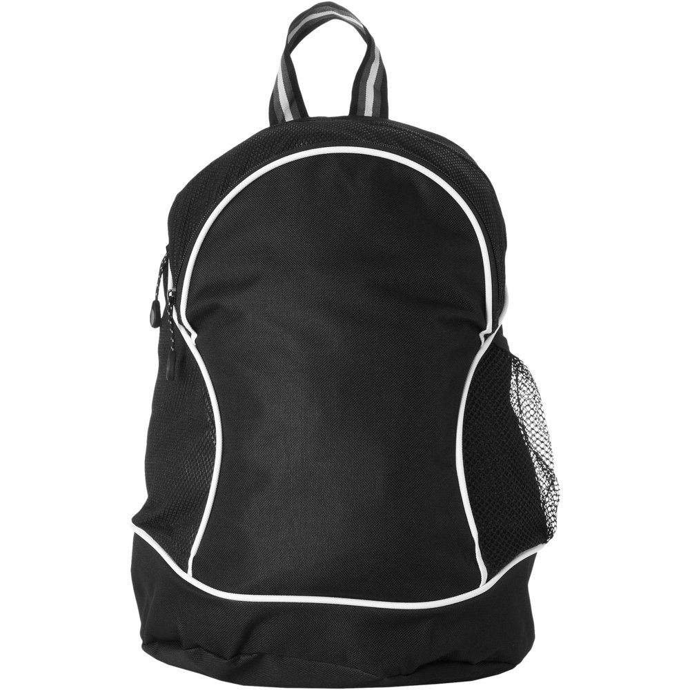 The Boomerang is an eye-catching promotional backpack and is available in several striking colour combinations. With its main zippered compartment, and a front zippered pocket, including a convenient interior organization, the sporty-looking backpack offers plenty of room for carrying large and small items. The side mesh pocket also holds space for small items. It has padded, adjustable shoulder pads and therefore fits every adult. The Boomerang backpack is made of durable 600D polyester, and non-woven polypropylene (80 g/m²).