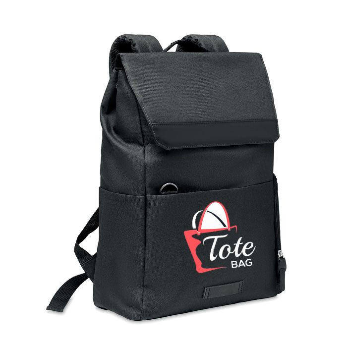 600D 2 tone RPET 15 inch laptop backpack with magnetic snap button.