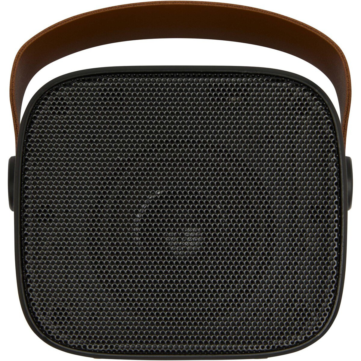 The Diya wireless speaker is made from recycled plastic and has a PU leather strap for easy portability. It delivers 3 watts of powerful sound and supports MP3 playback via Micro SD. Enjoy seamless connectivity with a line-in option and recharge effortlessly through the Type-C charging port. Playback time at max volume is approximately 3 hours and the speaker can be fully charged 0-100% in approximately 2 hours.