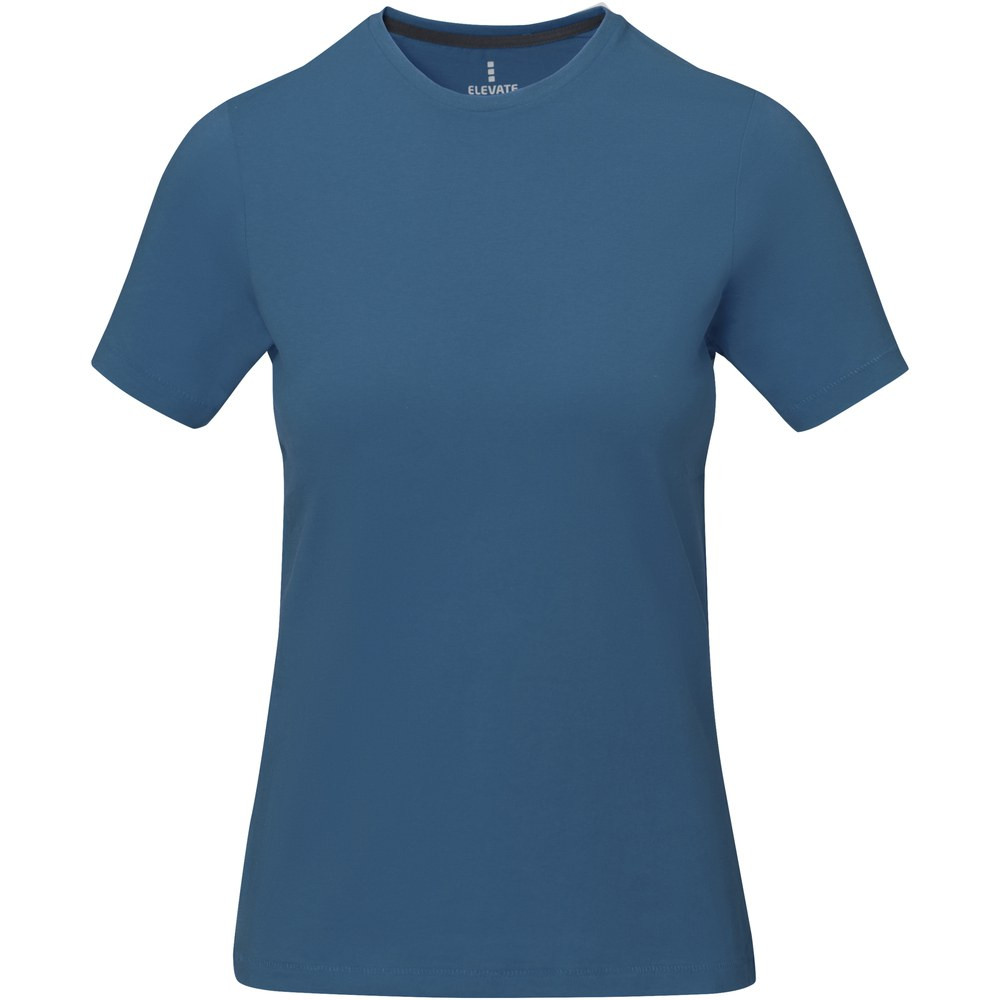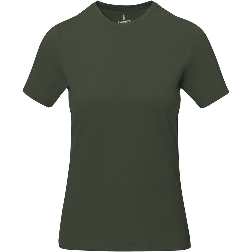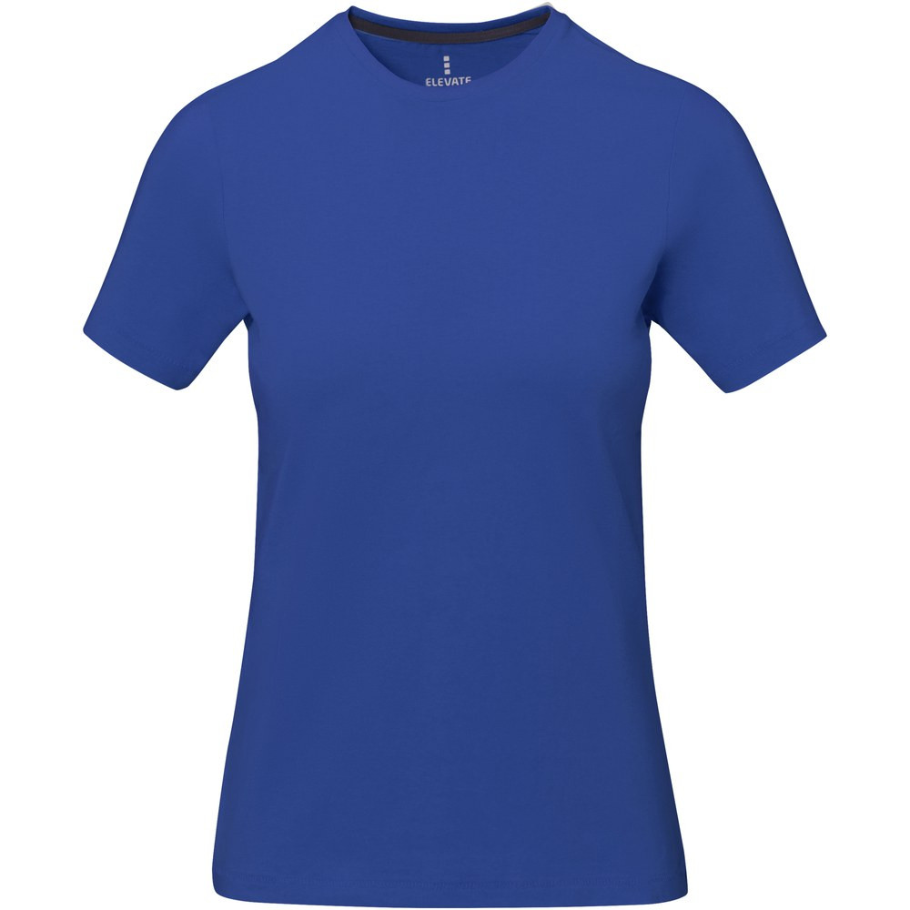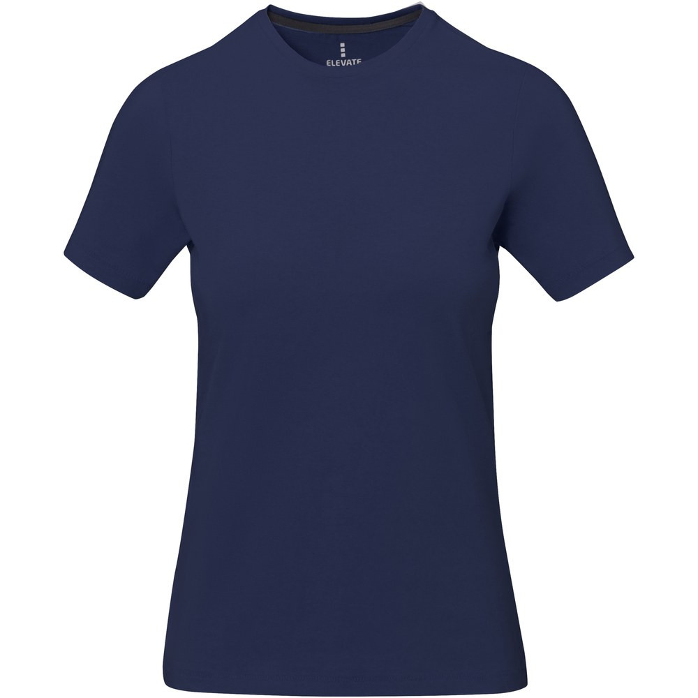 The Nanaimo short sleeve women's t-shirt made of 160 g/m² cotton is perfect for any occasion and a comfortable addition to any wardrobe. The ringspun cotton provides a stronger and smoother yarn, resulting in a more durable fabric that guarantees high quality branding. It is shaped for a feminine look and has side seams to ensure a great fit, while the printed in-neck Elevate branding adds to its overall comfort. The re-enforced shoulders also ensure a continuous fit even after long-term use.