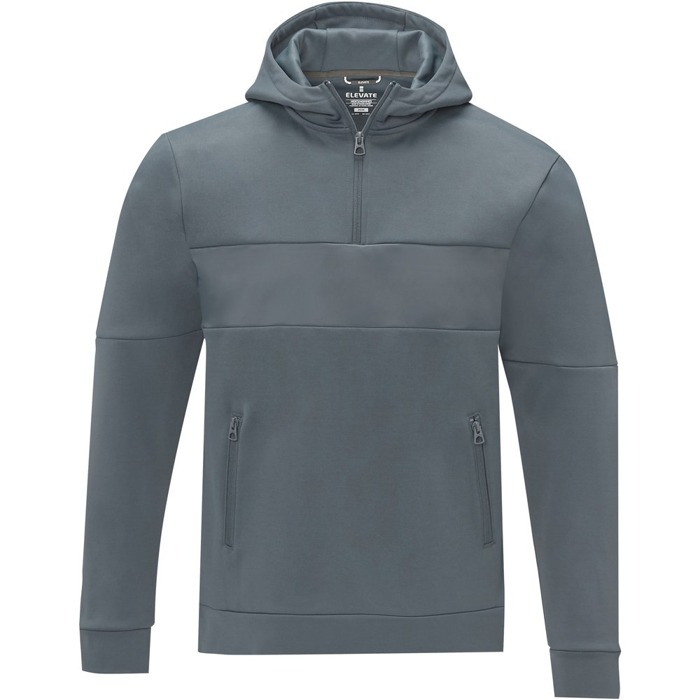 The Sayan men's half zip anorak hooded sweater – a unique combination of performance and style. The anorak design combines fashion and function seamlessly, featuring a quarter zip for versatility in layering. Made from a 350 g/m² blend of polyester and Sorona® knit. The Sorona® fiber enhances the jacket's eco-friendliness by incorporating a sustainable element without compromising on performance. The contrast fabric on the front panel, made of 280T ripstop nylon, adds to the design with its durability and texture and is the ideal location to showcase your brand. Whether you're embarking on an outdoor adventure or simply navigating your daily routine, the Sayan hooded sweater effortlessly combines fashion with function.