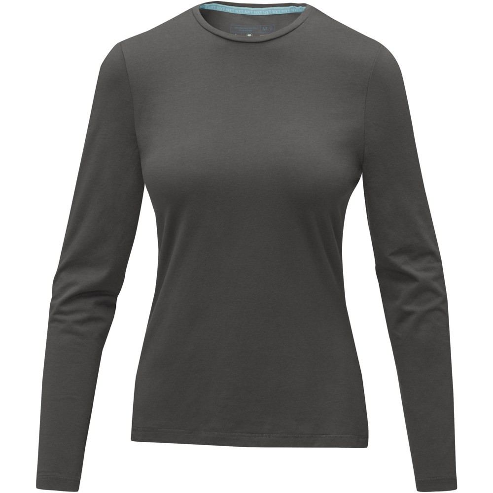 The Ponoka long sleeve women's organic t-shirt is a modern and sustainable choice. Made from 95% organic cotton, this t-shirt is not only good for the environment but also soft and comfortable to wear. The 5% elastane ensures a soft and stretchy fit, and the long sleeves provide added coverage for cooler weather, making it suitable for year-round wear. With a fabric weight of 200 g/m² this t-shirt has a sturdy and substantial feel, while remaining breathable and comfortable.
