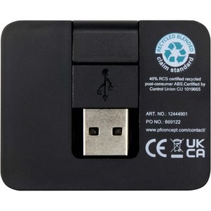 Gaia 4-port USB hub with USB-A and Type-C output and dual input - Solid Black - made from recycled plastic - EgotierPro 124449