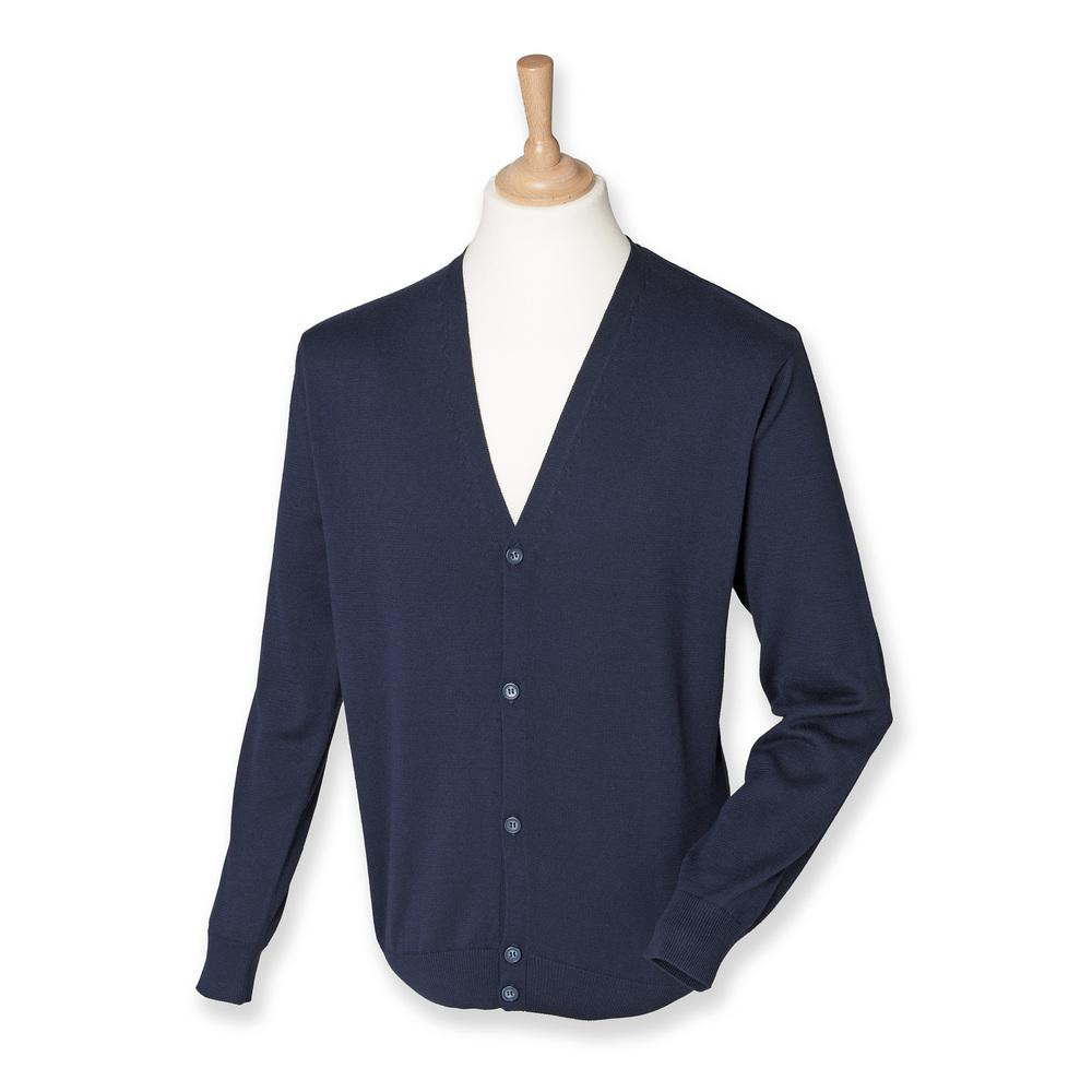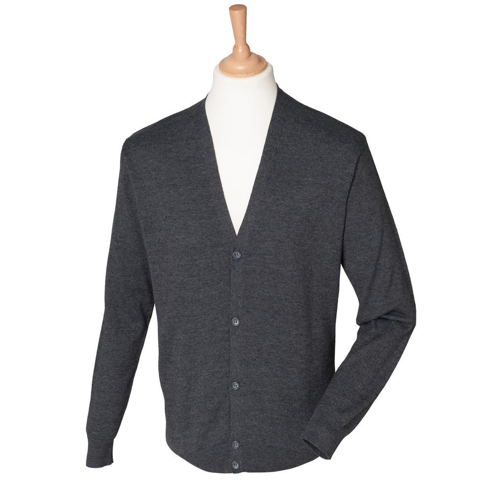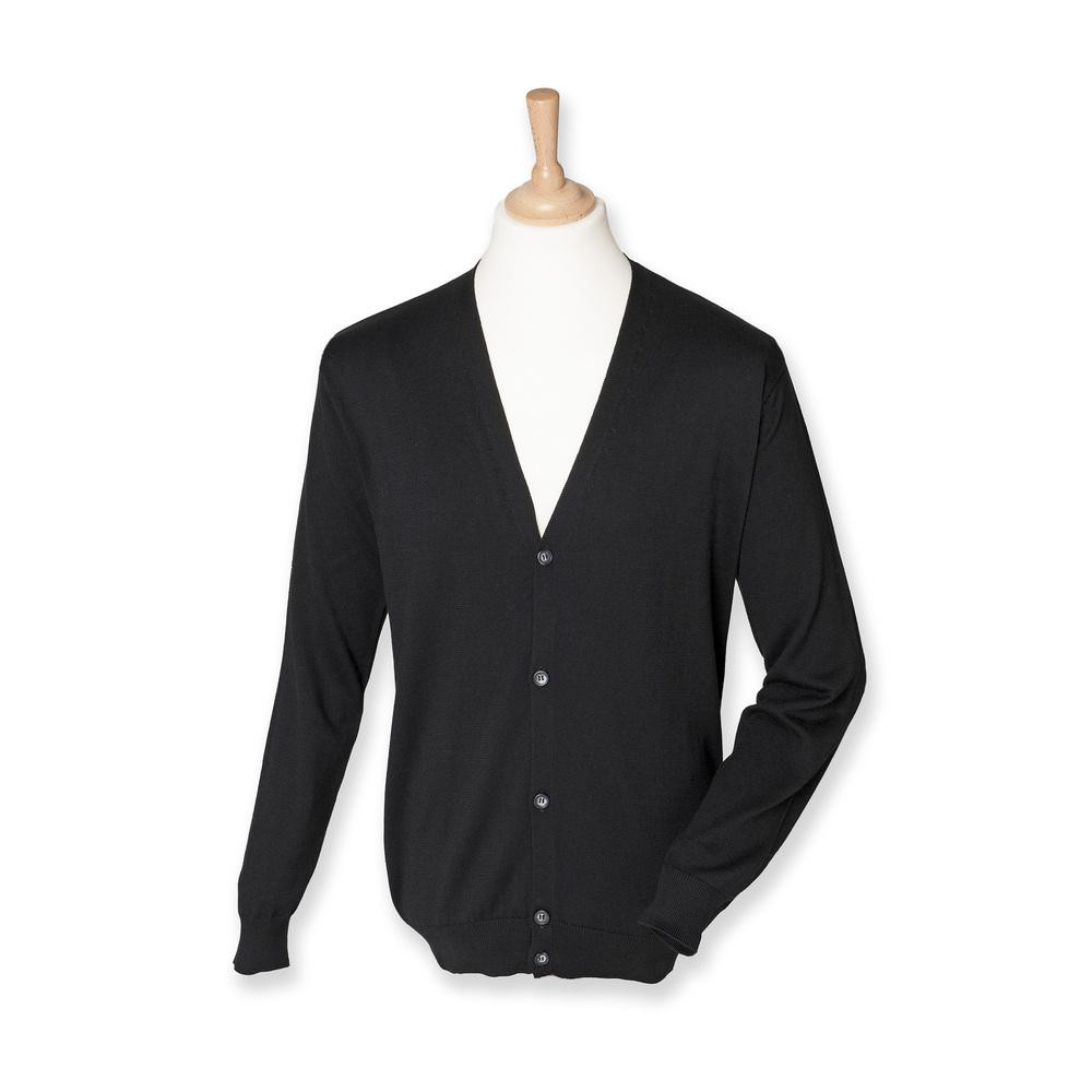 Fine knit 12 gauge. Semi fashioned set-in-sleeves and neck detail. Horn effect dyed to match buttons. 1 x 1 neck and cuff rib. Washing Instructions 40 wool. Do not bleach. Do not tumble dry. 2 dot iron. Do not dry clean. Wash at 40 degrees. Wash dark colours separately. Use colour recommended detergent. Re-shape while damp. Dry out of direct heat and sunlight. Iron on reverse. Do not iron decoration