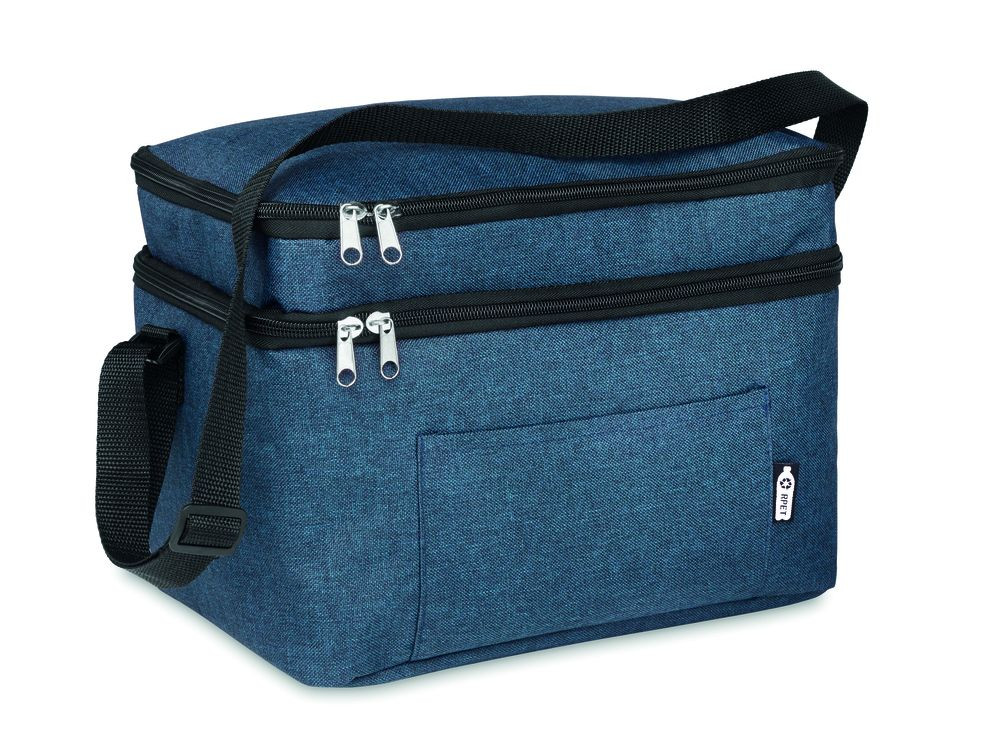 2 tone 600D RPET cooler bag with 2 compartments and PEVA lining.