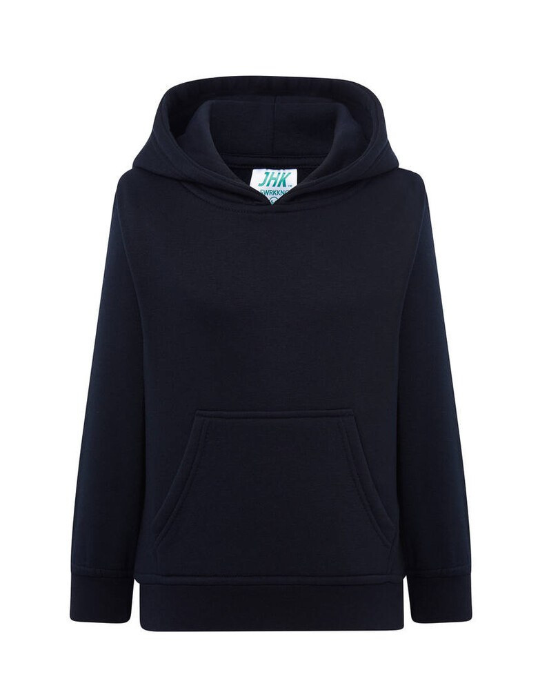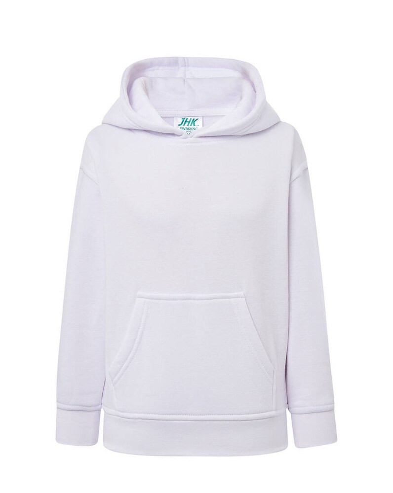 Classic and timeless, this JK295K hoodie from the JHK brand is a must-have, a garment for everyday life, especially for winter. It comes with a regular , straight and fairly fitted cut . It is characterized by a large hood with a tone-on-tone drawstring , a large kangaroo pocket , long sleeves and a hem with ribbed edges . It is perfect for composing an urban , casual or sporty look . Combine it with jeans, shorts or jogging, according to your desires. Its fabric is of quality; thick and comfortable , ideal for the cold and mild season. Available in several colors: green, white, red, gray, pink, black, blue and navy blue, choose between sizes 5/6, 7/8, 9/11, and 12/14.