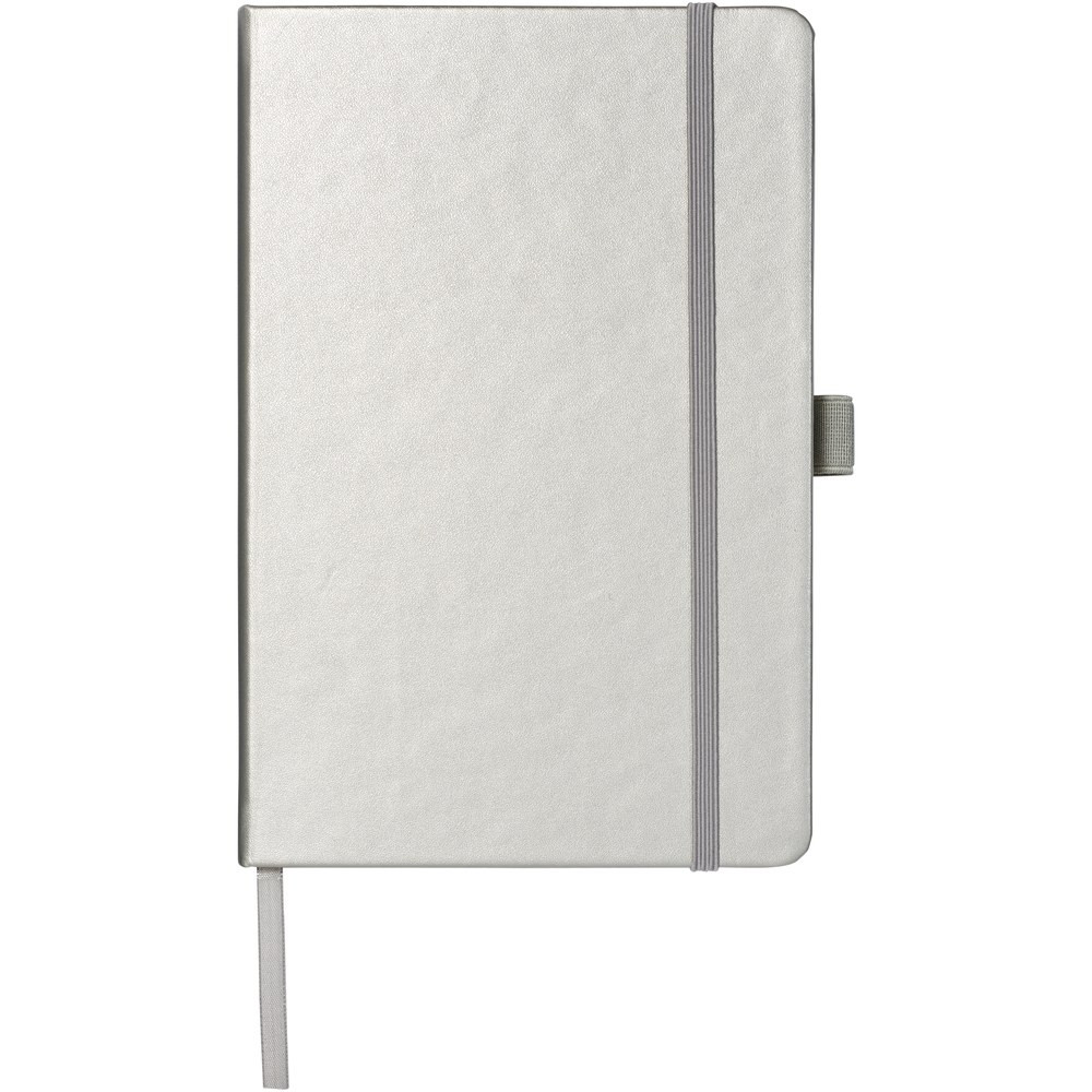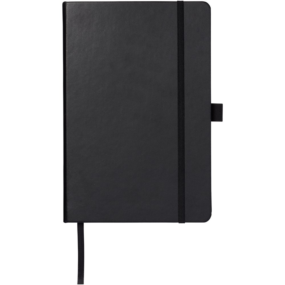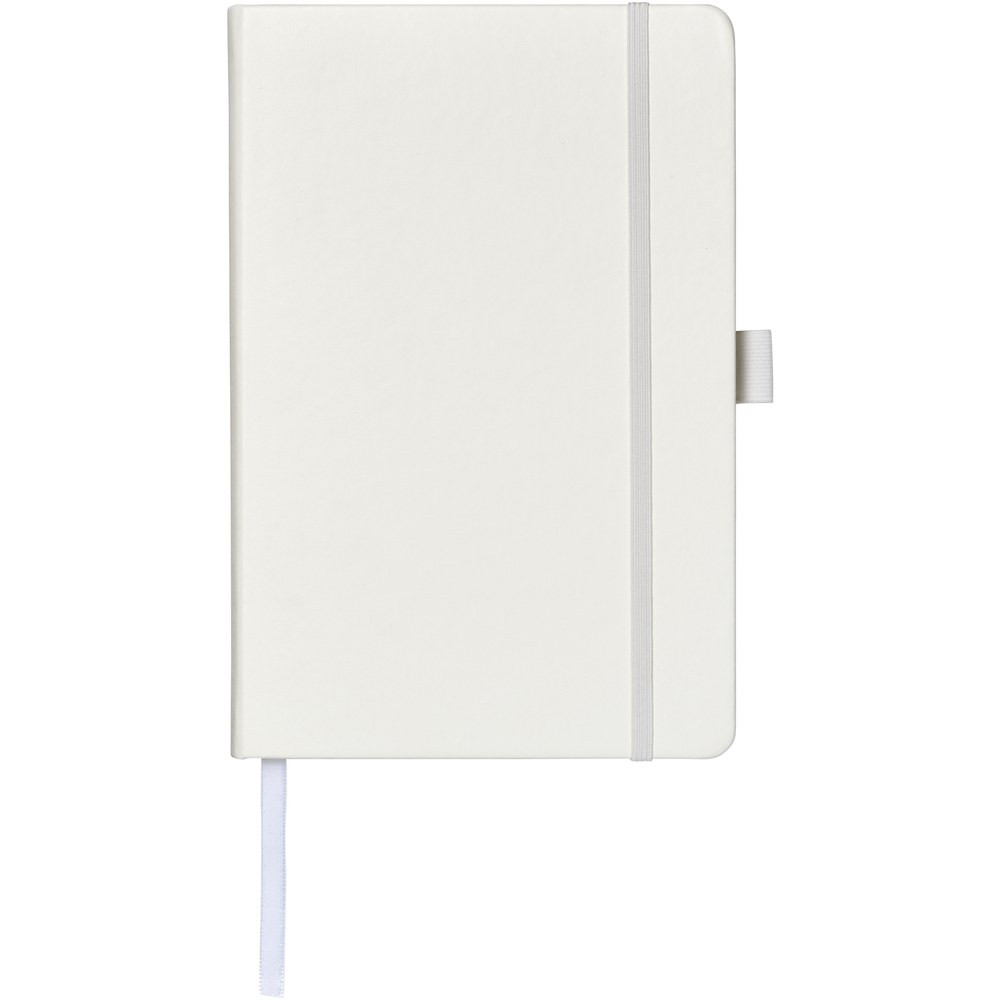 Imitation leather A5 (14.2 cm x 21.4 cm) notebook (leatherette) with elastic band, ribbon marker, pen loop and accordion back pocket. Includes 96 sheets of lined cream paper in 80 g/m2 and is offered in a Journalbook white sleeve.