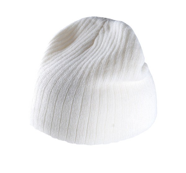 Beanie hat in ribbed knit.