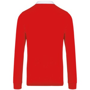 Heavyweight men's long sleeve rugby polo shirt in 280 gsm combed cotton jersey for premium comfort and durability. This Kariban K213 polo is inspired by classic rugby silhouettes, featuring a straight cut and a 3-button placket that offers a sophisticated alternative to standard shirts. The pre-shrunk combed cotton ensures a soft, breathable feel that keeps the wearer cool throughout the day. Designed for both blank retail and customization, it includes high-quality finishes such as 1x1 ribbed cuffs, a white contrast cotton twill collar, and a chevron lining inside the neck. Whether used for corporate branding or casual everyday wear, this robust garment maintains its shape and appearance through repeated use. Available in bulk for wholesale orders, it provides a superior canvas for branding projects.