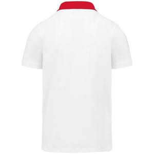 Contrasting neck and inner placket with 3 white faux pearl buttons.