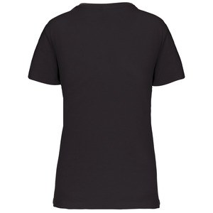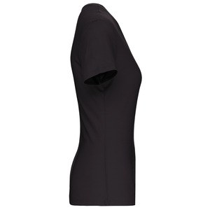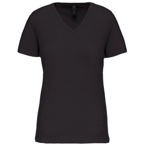 Ladies' V-neck t-shirt in organic cotton. Durable and soft for daily wear or bulk printing projects. This V-neck t-shirt is crafted from in-conversion organic cotton, offering a sustainable alternative for your wardrobe or business. It features a ribbed V-neck with elastane for shape retention and a matching taped neck for added comfort throughout the day. The twin needle finishing at the cuffs and hem ensures long-lasting durability, making it suitable for frequent wear and industrial washing cycles. Certified by OEKO-TEX, it is a reliable choice for eco-conscious businesses, event organizers, or individuals seeking quality basics. Its smooth surface is specifically designed for high-quality customization, including screen printing, DTF, and embroidery. Whether you are looking for blank apparel for a minimalist look or a canvas for your brand's logo, this t-shirt provides the perfect balance of comfort and utility. Available for wholesale and bulk purchase, it meets the needs of resellers and creators alike.