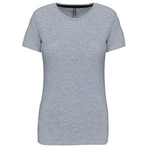 Ladies' short sleeve crew neck t-shirt in 100% enzyme-washed cotton for a soft hand feel. Durable and ready for bulk custom printing or everyday wear. This t-shirt features a feminine fit and a self-fabric neckline for a refined look. The enzyme-wash treatment ensures a smooth surface, making it an excellent canvas for screen printing, embroidery, or DTF. With twin-needle finishing on the sleeves and hem, it offers enhanced durability for workwear or retail merchandise. Whether used as a blank basic for your wardrobe or as a customized promotional item for events, this versatile top provides comfort and style. Available for wholesale, it is a reliable choice for businesses looking for quality apparel at scale.