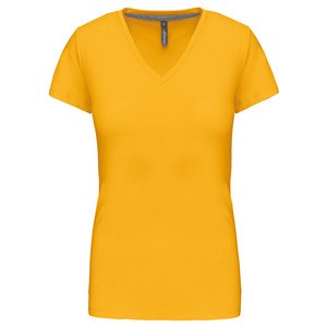 Ladies' short sleeve V-neck t-shirt in 100% cotton with an enzyme wash for a soft feel. This feminine fit tee offers a smooth surface for customization and durable twin needle finishing. The enzyme-washed treatment ensures a premium hand feel, making it a superior choice for bulk wholesale orders or individual retail use. Its self-fabric neckline and taped neck provide structural integrity, ensuring the garment maintains its shape after repeated wear. Whether used as a blank basic for everyday style or as a canvas for high-quality printing and embroidery, this V-neck combines comfort with professional-grade construction.