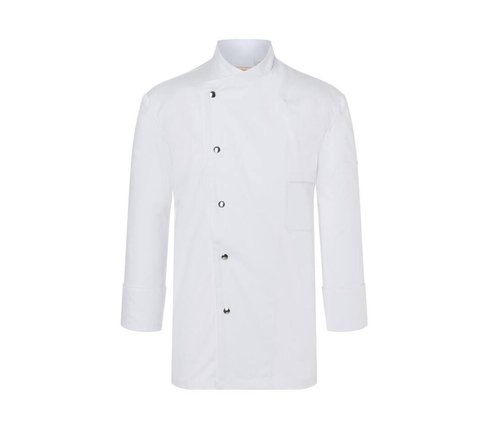 The Lars KYJM14 chef's jacket is a quality jacket from the Karlowsky brand , it has been specially designed for lovers of the culinary arts wishing to cook while being stylish . It comes with a classic cut , a left breast patch pocket with compartment for your pens and keys, and 5 press studs that serve as a closure. And like all self-respecting kitchen jackets, it likes a pre- shrunk material and light with a weight of 215g/m² , to be sure not to get in the way during your preparations. It is also easy to care for, it is resistant to washing and is suitable for industrial washing . This model is available in all sizes from 44 to 66 . As for the color, the Karlowsky brand offers you the choice between 4 colors, namely black, navy, anthracite and white .