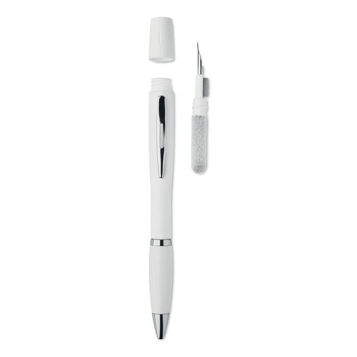 It has a True Wireless Stereo (TWS) earbud cleaning kit: metal nib, sponge and brush.