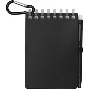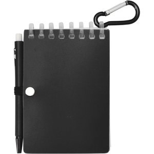 The Lig Mini notebook and pen set is a compact and practical companion for on-the-go note-taking. The spiral-bound notebook has a soft recycled plastic cover and 70 blank sheets of 120 g/m² water-resistant stone paper, making it ideal for outdoor use. With rounded corners and a built-in pen loop, it embraces the mini-size trend while remaining functional. The matching ballpoint pen is made from recycled ABS plastic, writes in black ink, and offers a writing length of 250 metres. A colour-coordinated metal ring allows the set to be easily attached to a backpack, purse, or keychain, making it perfect for durable and portable note-taking. Notebook size: 11 × 7.5 cm.