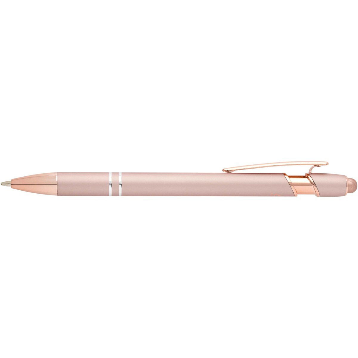 The Nanna ballpoint pen with rose gold finish has a barrel made of recycled aluminium with a touch stylus made of silicone. Recycled aluminium reduces the amount of waste in landfills and helps to conserve natural resources aiming to reduce greenhouse emissions. Ink colour: Blue. Writing length: 800 metres. Nib size: 1.0 mm.