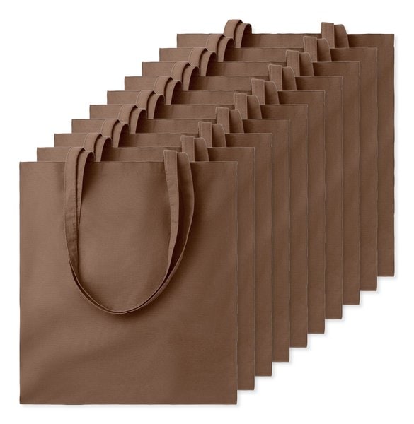 Pack of 10 GiftRetail MO9268 - Chocolate - COTTONEL COLOUR Eco-Friendly 140gsm Cotton Shopping Tote Bag
