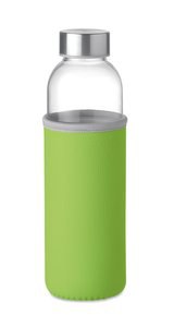Pack of 10 GiftRetail MO9358 - Lime green - UTAH GLASS Eco-Friendly 500ml Glass Bottle with Neoprene Cover