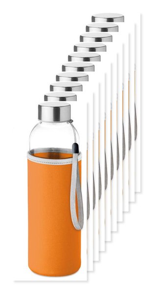 Pack of 100 GiftRetail MO9358 - Orange - UTAH GLASS Eco-Friendly 500ml Glass Bottle with Neoprene Cover