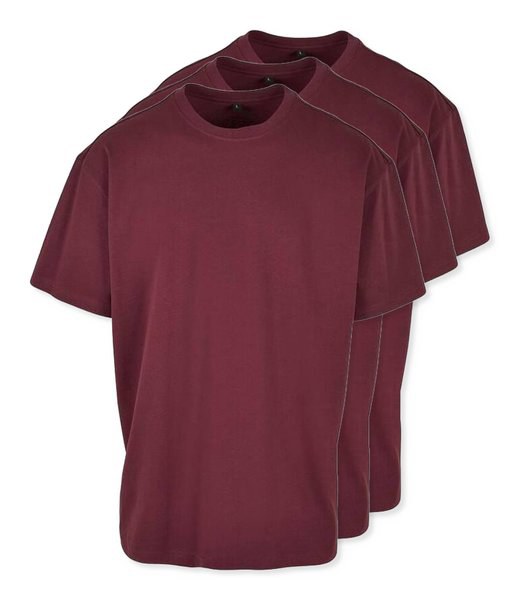 Pack of 3 Build Your Brand BY102 - Cherry - Classic Comfort Oversized Cotton T-Shirt for Men