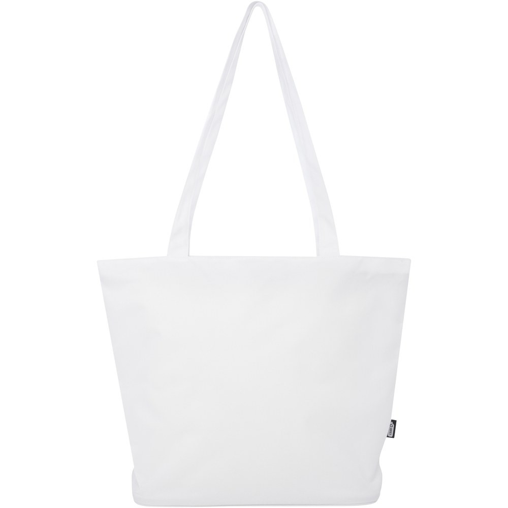 Made from water-repellent 600D RPET, the Panama GRS recycled zippered tote bag is a perfect multi-purpose bag for going to an event, to the beach, or to use for grocery shopping. It features a zippered main compartment, and a zipper pocket inside big enough to hold your phone as well as other valuable belongings. The handles are 34 cm long and therefore the tote bag is easy to carry over the shoulder. Resistance up to 10 kg weight. PVC free.