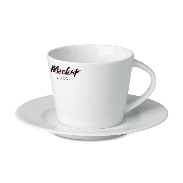 Porcelain conic cappuccino cup with saucer.