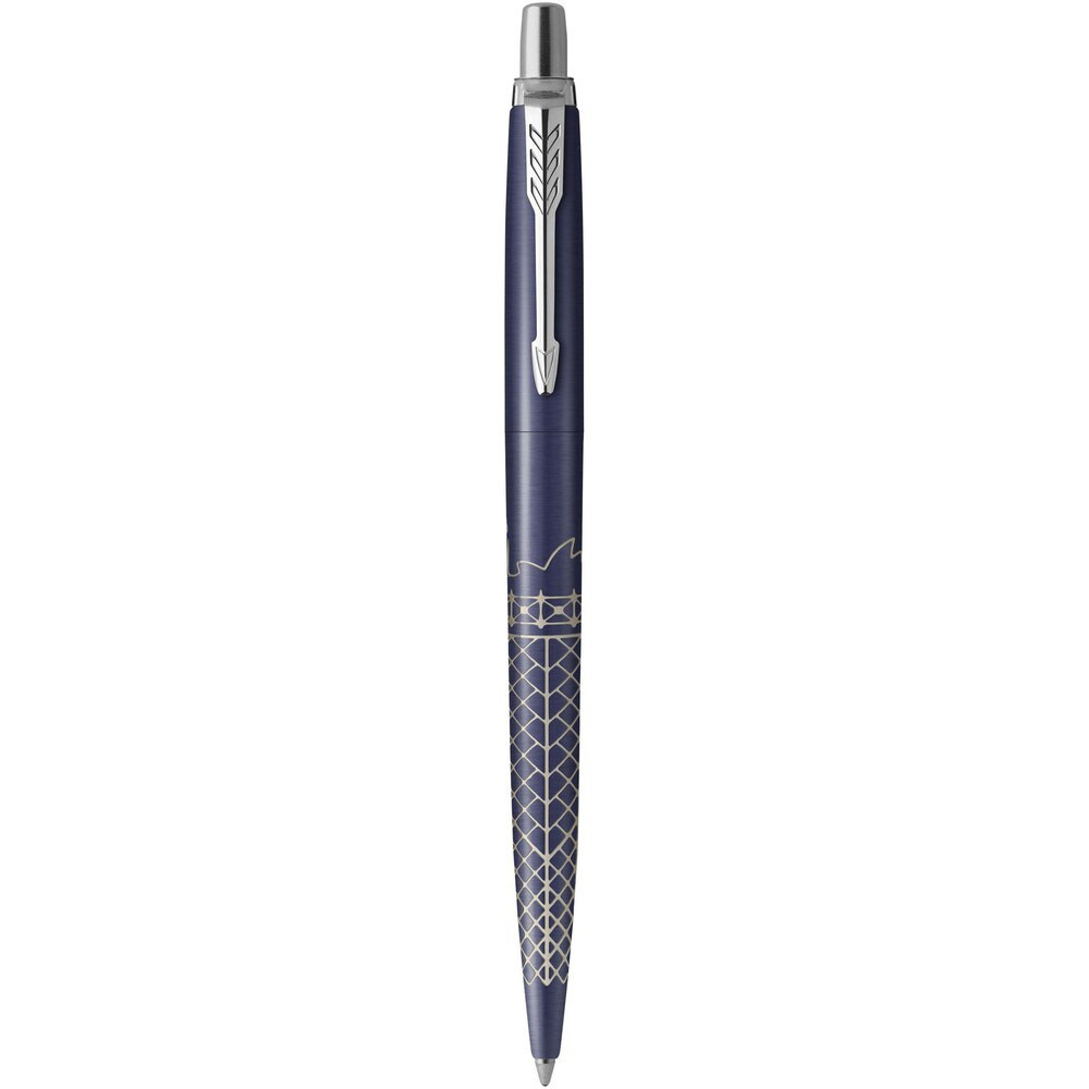 Parker Jotter SE Global Icons ballpoint pen with blue ink, delivered in a gift box. The Parker Jotter SE Global Icons is a series of pens from Parker, a well-known brand with a long history of producing high-quality writing instruments. The "SE" stands for "Special Edition", and the "Global Icons" theme suggests a design that celebrates iconic elements from around the world. Writing length: 2000 metres.