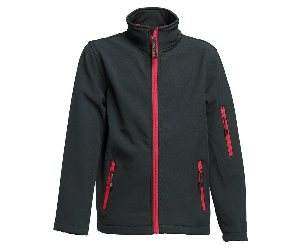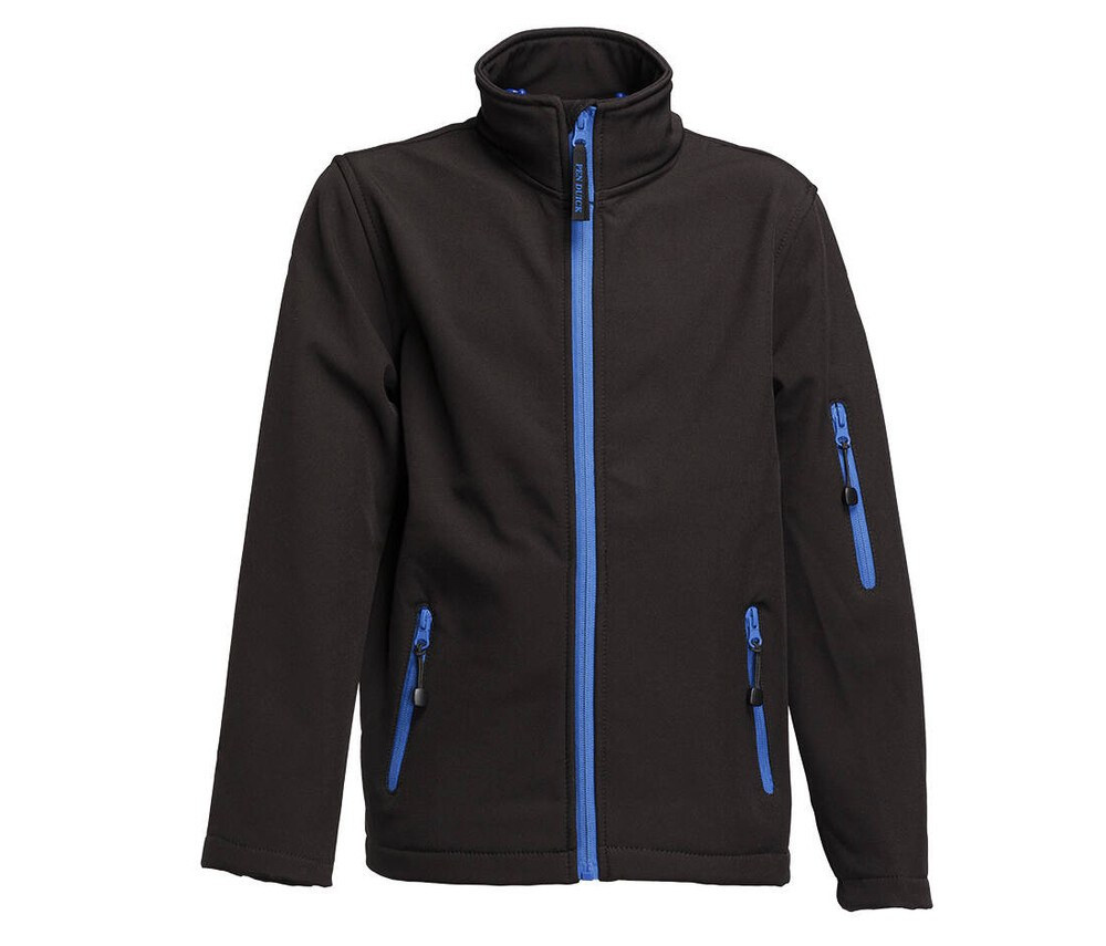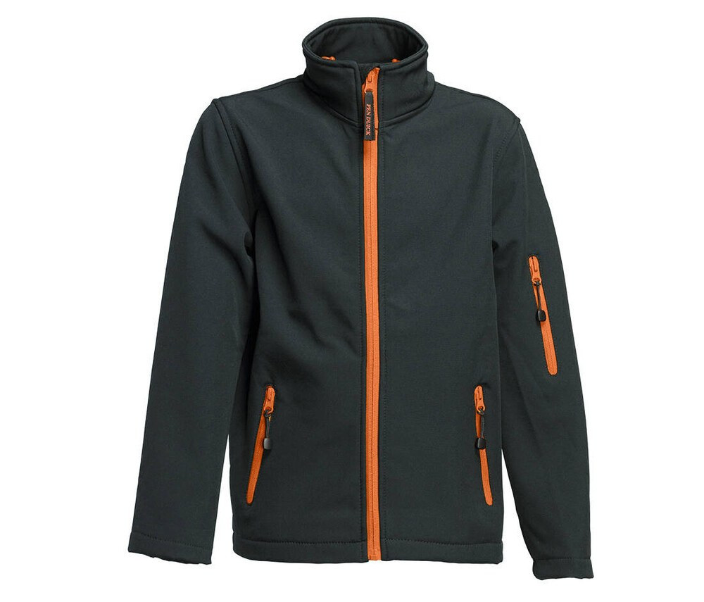 95% polyester / 5% elastane. 3 layer bonded fabric. Lightweight. Windproof, waterproof & breathable. Open hem & cuffs. Inner storm flap with chin guard. 2 front zip pocket with zip puller. Sleeve pocket with zip puller.