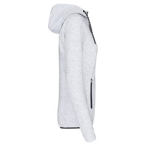 Hood with 65% polyester/35% cotton jersey lining, and two-tone drawstring with plastic tips.