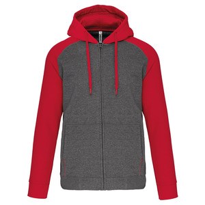 Proact PA380 - Grey Heather / Sporty Red - Unisex two-tone zipped hooded fleece jacket