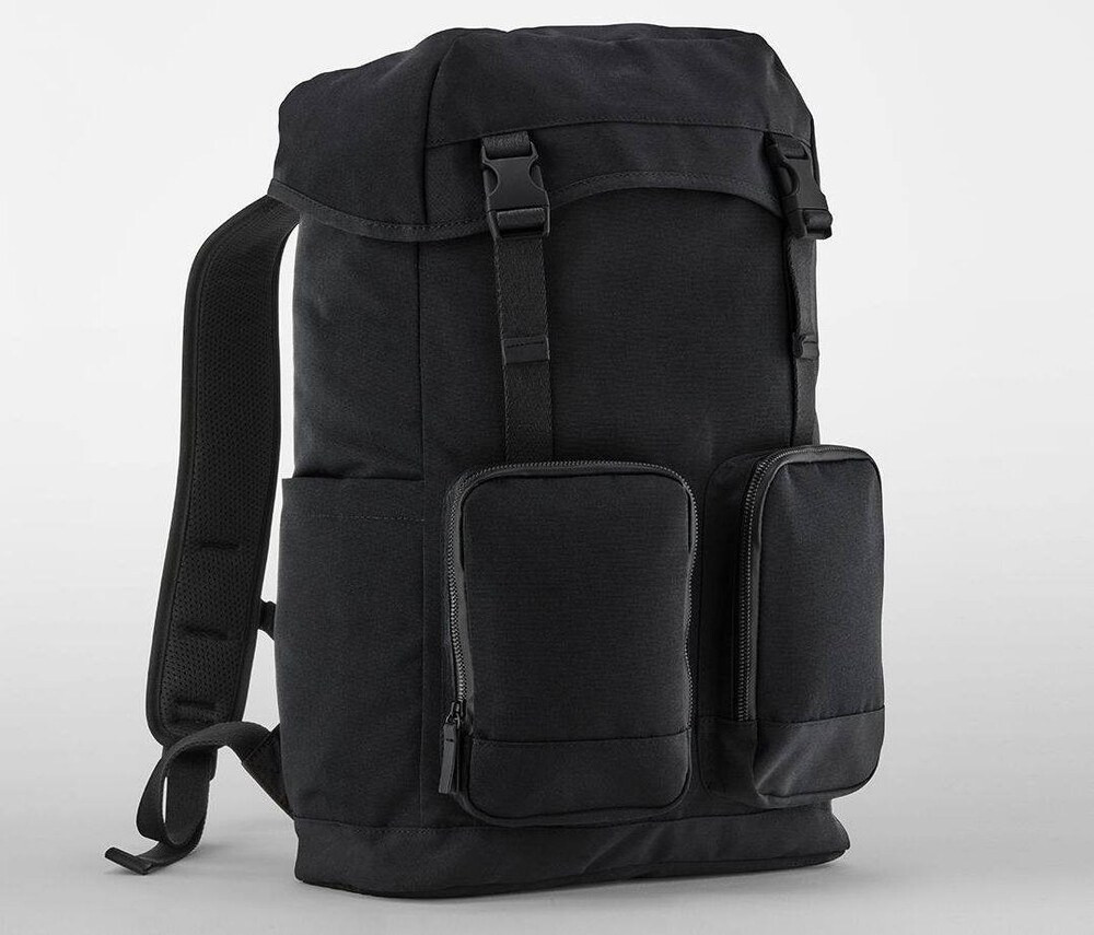 Water repellent fabric. Rear padded laptop compartment, compatible up to 16". Side pockets with magnetic closure. Large main compartment. Two zippered front pockets. Zippered rear security pocket. PU, self-coloured zip pullers. Drawstring closure. Rear luggage strap. Padded adjustable shoulder straps. Grab handle. Print area: front pocket: 12x12cm - main front panel: 15x5cm.
