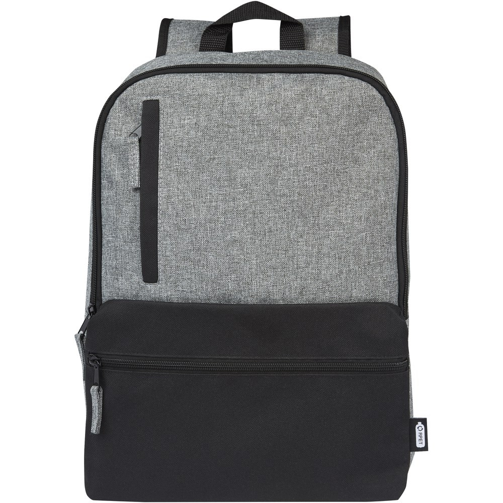 Laptop backpack made from 100% GRS recycled materials on the exterior featuring 2 zippered front pockets plus a spacious zippered main compartment containing a padded 15" laptop sleeve. The Reclaim laptop backpack is a durable bag for your accessories and electronics, ideal for commuting, traveling, or regular daily use.