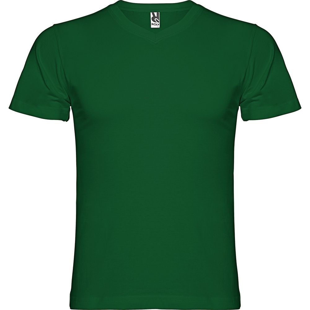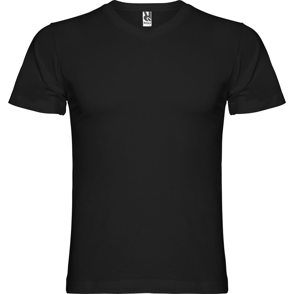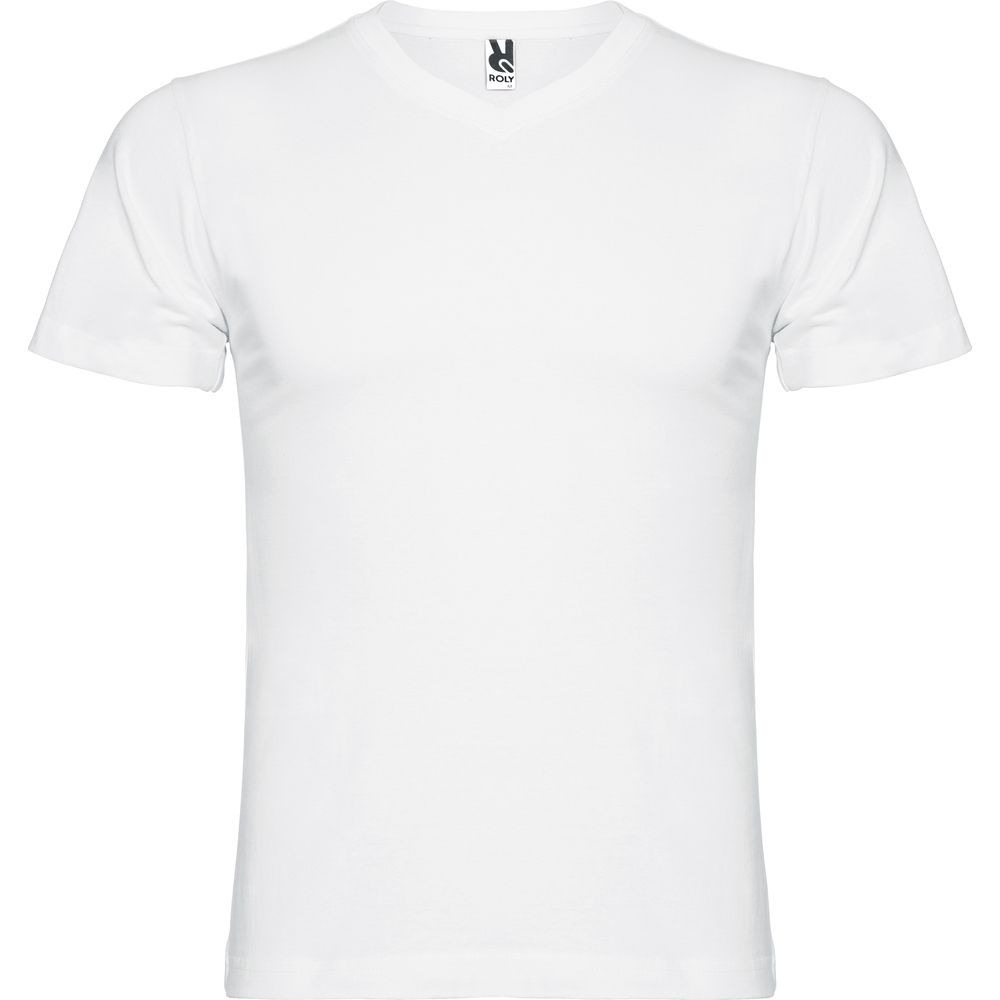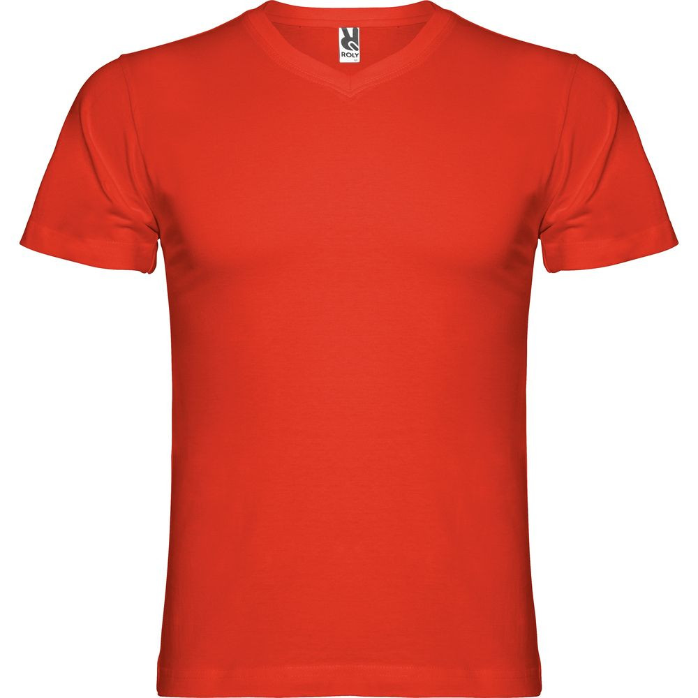 Tubular short-sleeve t-shirt with 2-layer v-neck.