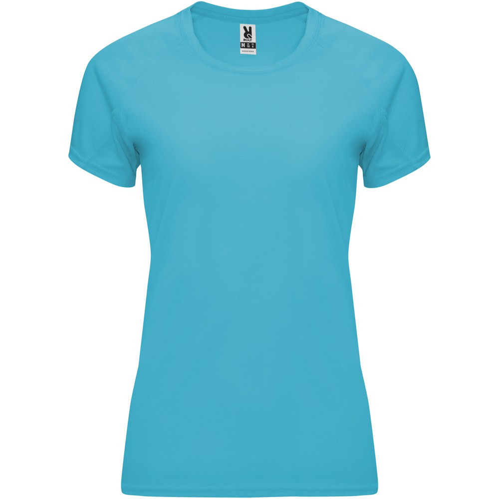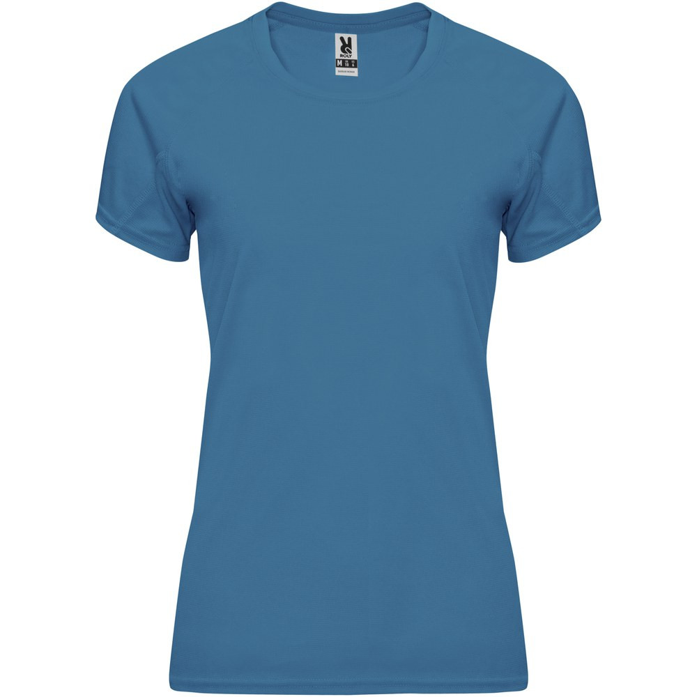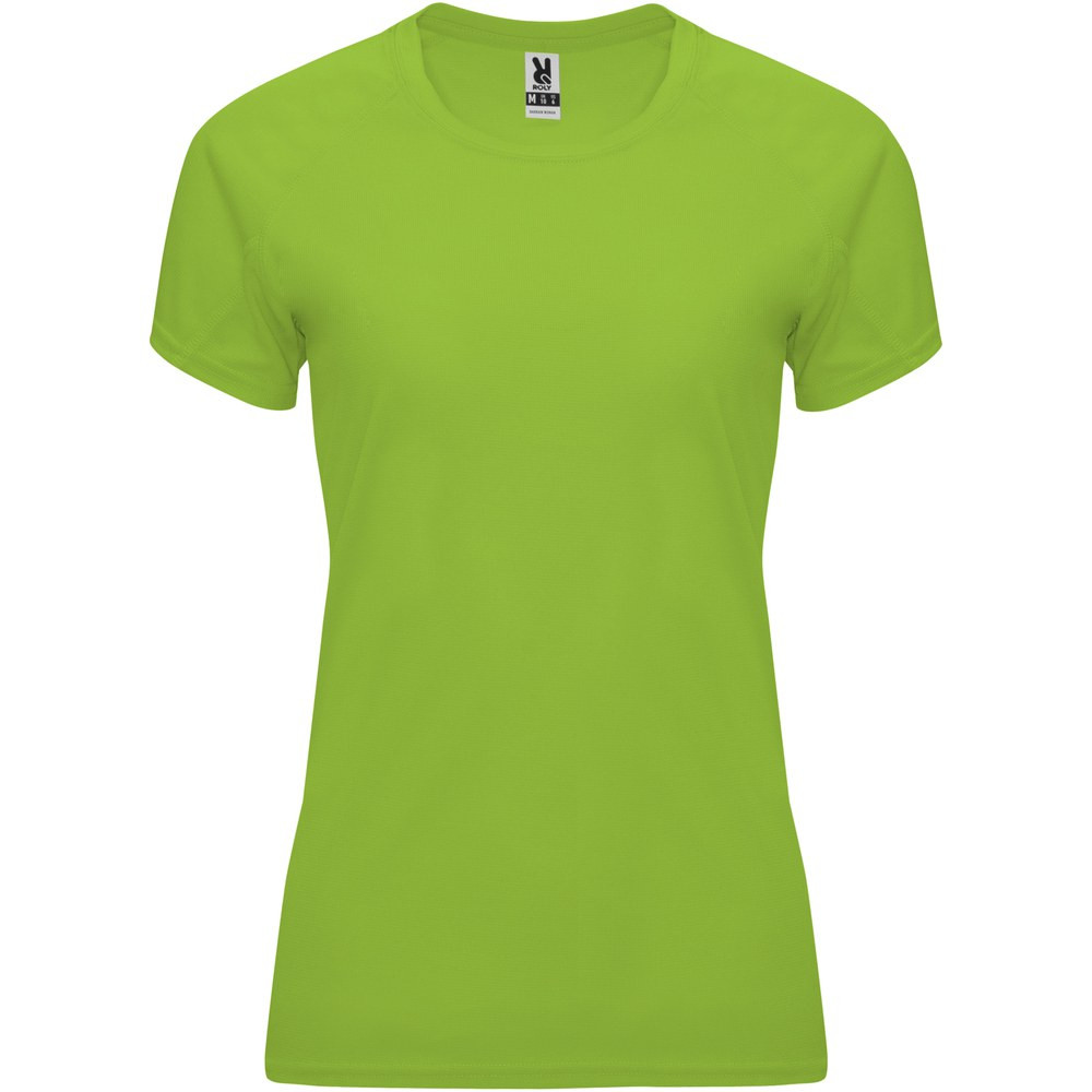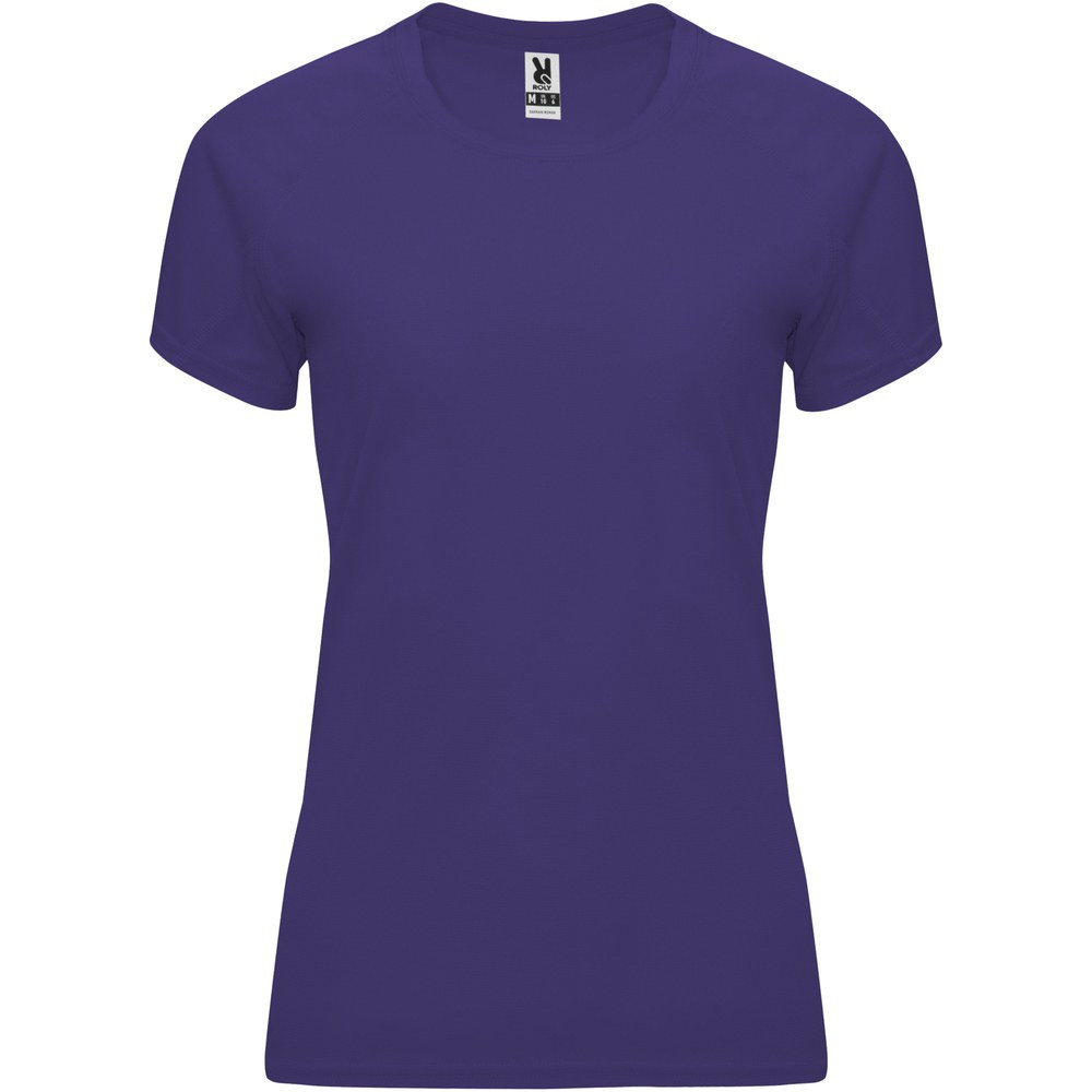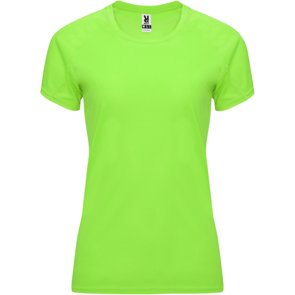 Technical short-sleeve raglan t-shirt for women. Crew neck with matching covered seams. Sleeve panels. Matching overlock in armhole and sleeve panel. CONTROL-DRY fabric. Removable label. Technical fabric. UV protection factor. The model is 173 cm and is wearing size S.