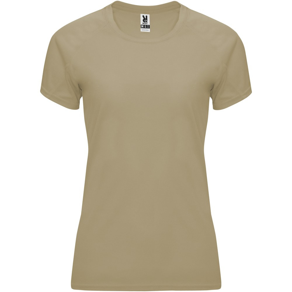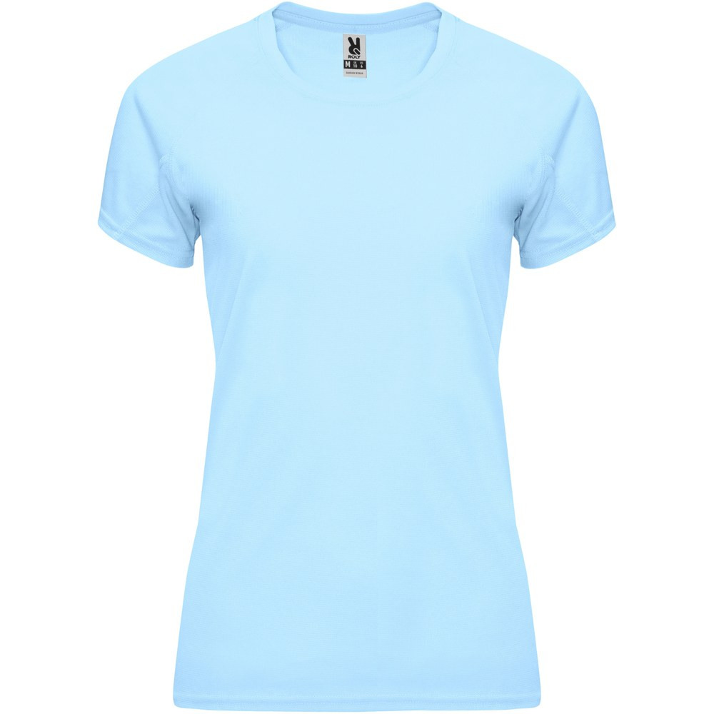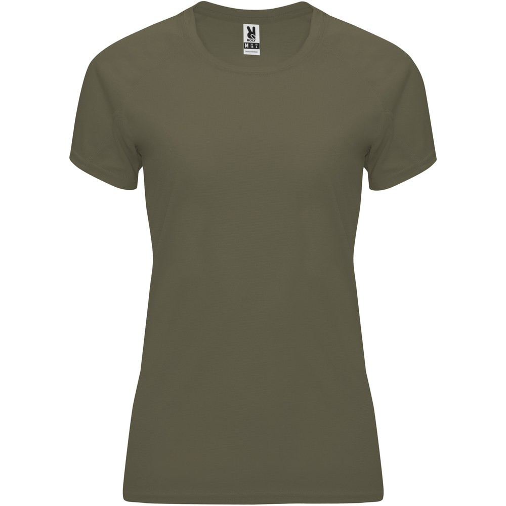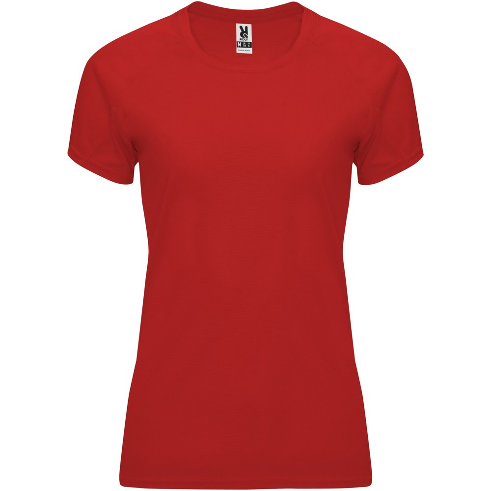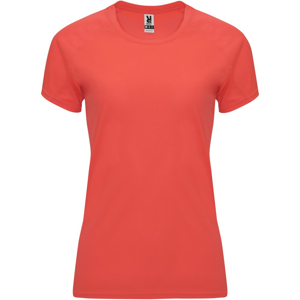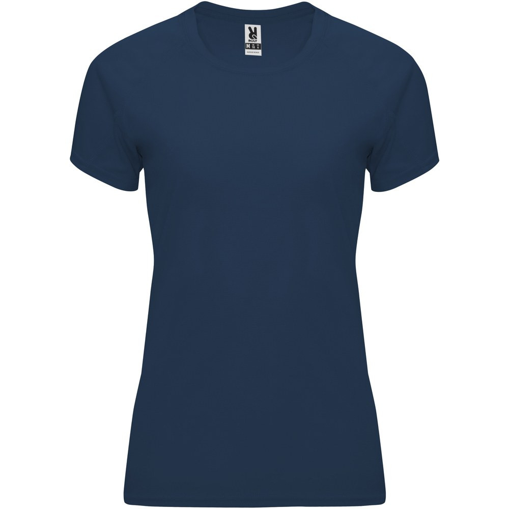 Technical short-sleeve raglan t-shirt for women. Crew neck with matching covered seams. Sleeve panels. Matching overlock in armhole and sleeve panel. CONTROL-DRY fabric. Removable label. Technical fabric. UV protection factor. The model is 173 cm and is wearing size S.