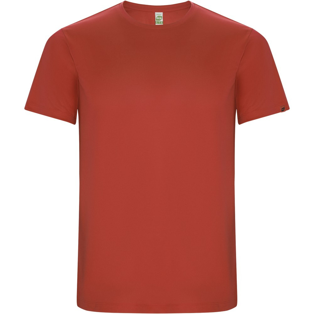 Technical short-sleeve t-shirt in recycled CONTROL-DRY polyester. Crew neck with matching covered seams. ECO logo label on sleeve. Packing in recycled material. Removable ECO label. Packing in recycled material. Technical fabric. The model is 180 cm and is wearing size M.