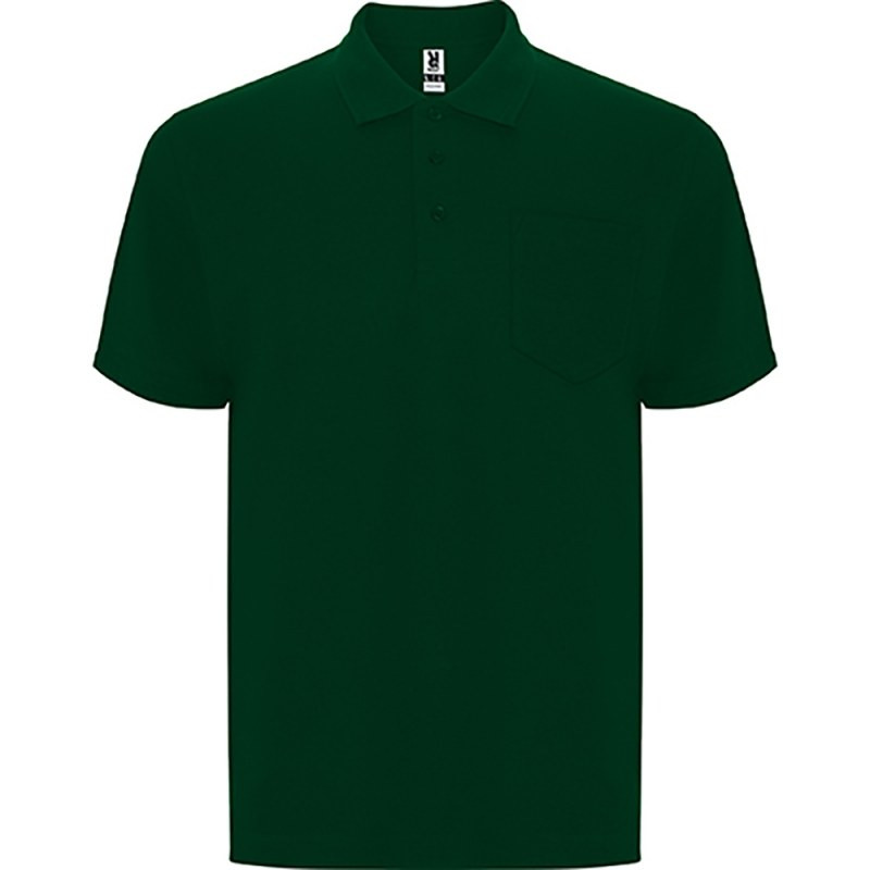 Short-sleeve polo shirt with pocket on left chest. Collar and cuffs in 1x1 ribbed fabric with detail. 3-button placket. Reinforced covered seams in collar. Removable label. Anti-pilling treatment.