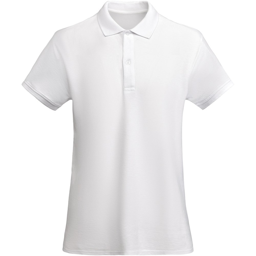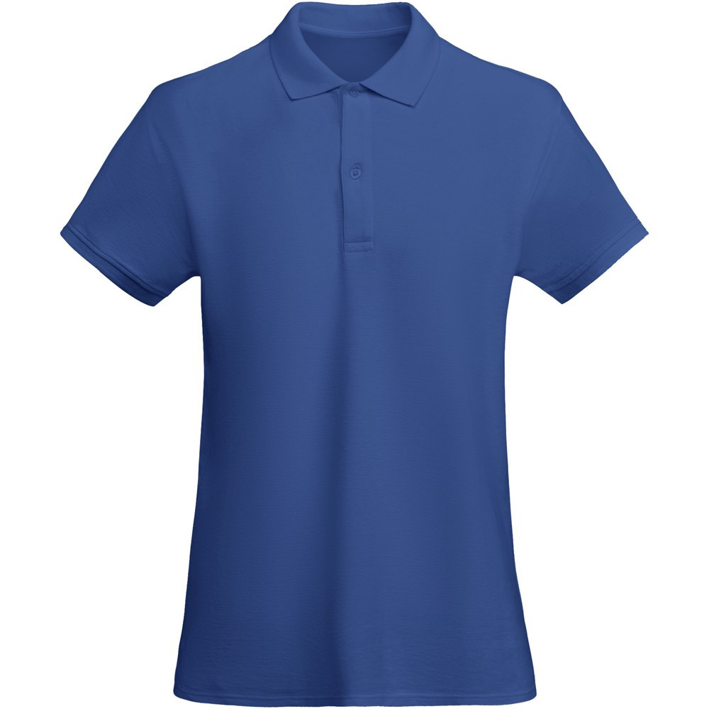 Fitted short-sleeve polo shirt for women in organic cotton. 1x1 ribbed collar and sleeve edging. 2-button placket. Reinforced covered seams in collar. Side slits on hem. Removable label. The model is 174 cm and is wearing size S.