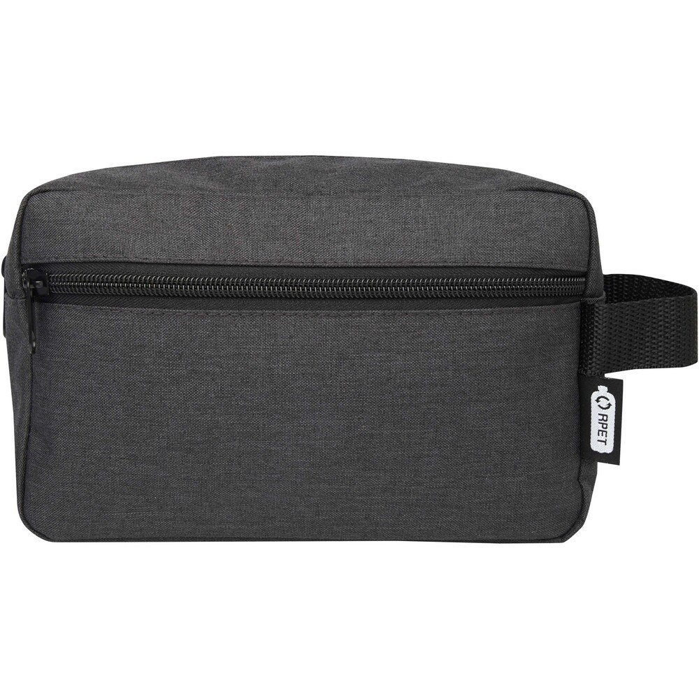 The Ross toiletry bag is the perfect travel companion for cosmetics and hygiene articles. It is manufactured with GRS certified recycled polyester, making it a more sustainable choice. Featuring a zipped main compartment, a front pocket, and a webbing loop. Capacity: 1.5 litres.