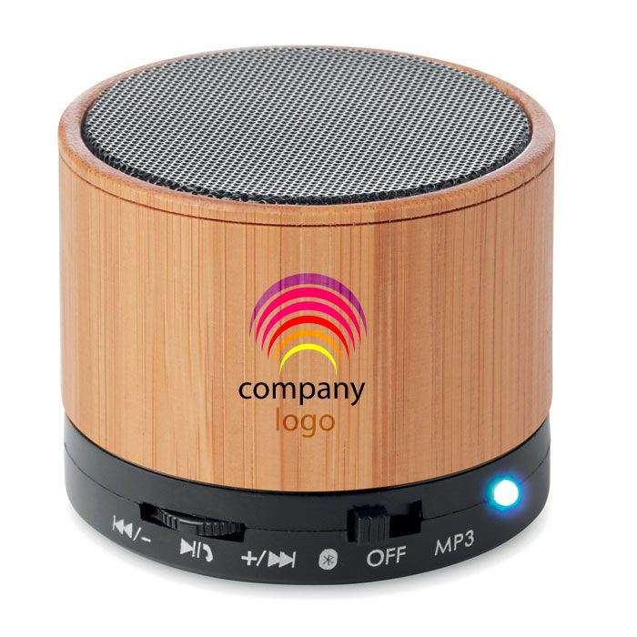 ROUND BAMBOO Wireless speaker in bamboo - GiftRetail MO9608