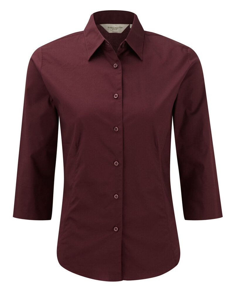 Fitted cut and contemporary design make this style the right choice wherever a modern appearance is required. Smooth fabric with a slight stretch for added comfort and fit. Classic single button collar. Stylish elbow-length 3/4 sleeve with split cuff. Darts on back panel and on front hem, for fitted ladies' shape. Rounded hem. Washing Instructions Suitable for 40C wash and tumble dry