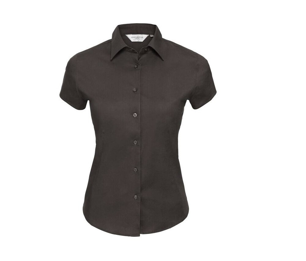You'll love this JZ47F shirt from the Russell Collection , it's a sexy and light top , for everyday wear and more. This women 's shirt matches with a skirt, trousers or a palazzo. Wear it proudly in summer, winter and mid-season. The garment is characterized by short stretch knit sleeves , a classic collar , and a closure with seven buttons . This shirt has a straight, fitted cut with darts . It is available in several colors , white, chocolate, black and burgundy; with different sizes, XS, S, M, L, XL and 2XL .
