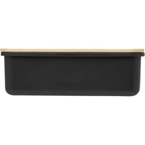 The Mangi lunch box is made of recycled plastic and has a 750 ml capacity. It features a bamboo lid and an elastic band to keep the lid in place, ensuring that the contents stay fresh. The container is dishwasher safe without the lid.