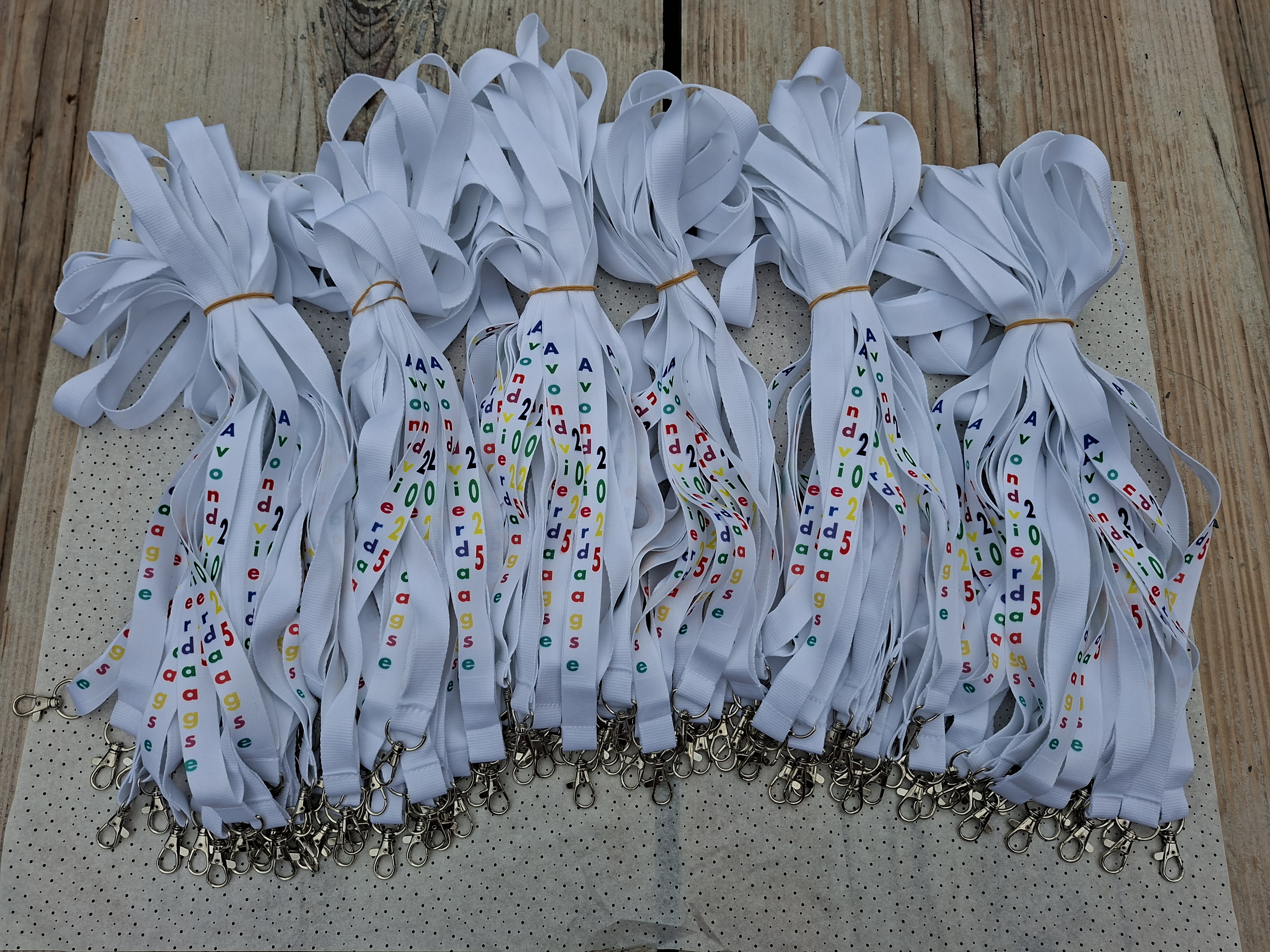 The lanyard has a width of 20mm and a total length of 2x90cm.