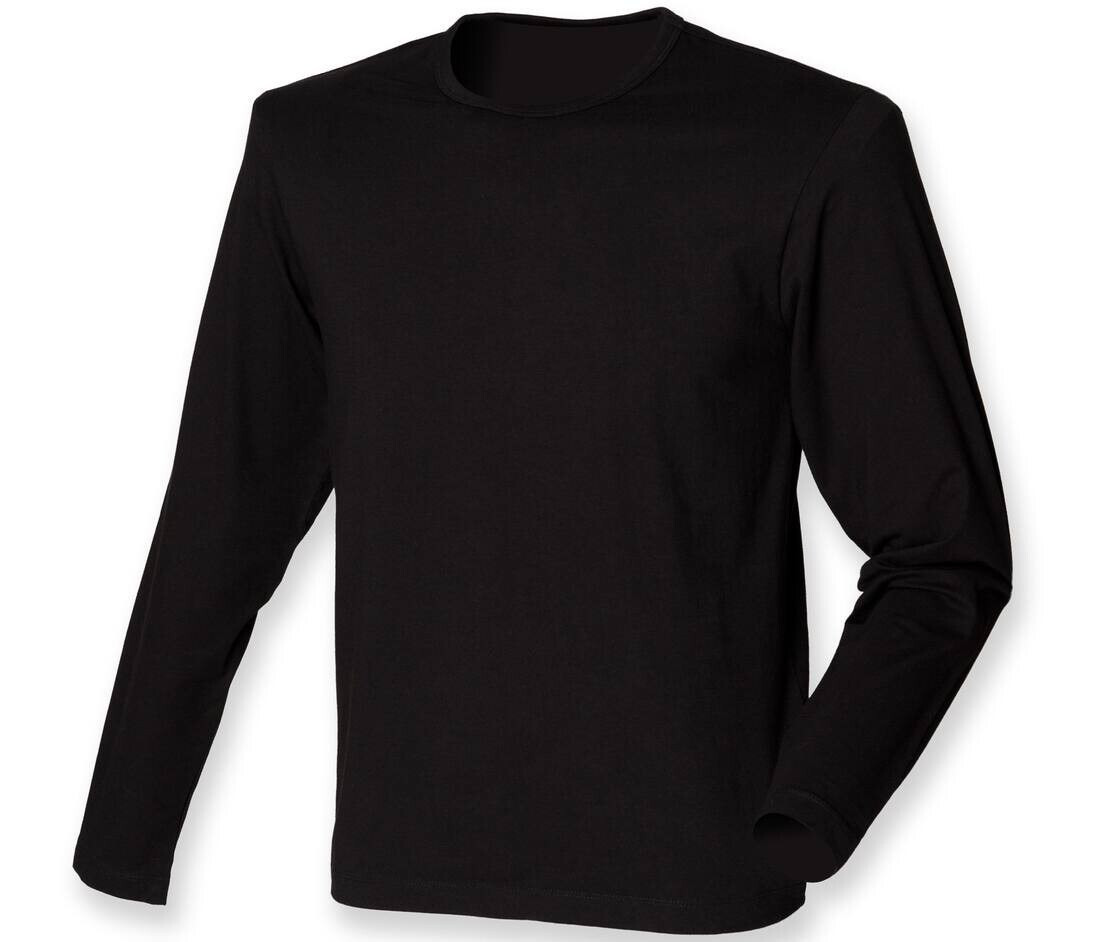 96% cotton / 4% elastane. Tear-out Skinnifit label. Ribbed crew-neck with back-neck tape. Enzyme wash for unique soft hand feel. Modern long line fit. Twin needle stitching at sleeves and hem. Matches Ladies' SK124 and SF/SK121 Feel Good SS Stretch T Washing Instructions Wash at 40 degrees. Wash as synthetics. Do not bleach. Do not tumble dry. Wash dark colours together. Re-shape whilst damp. Dry out of direct heat and sunlight. Iron at medium temperature on reverse.