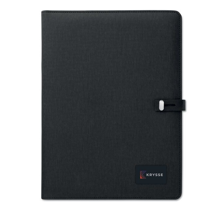 A4 conference folder portfolio in linen-PU with clasp closure.